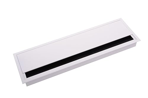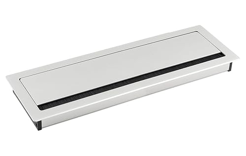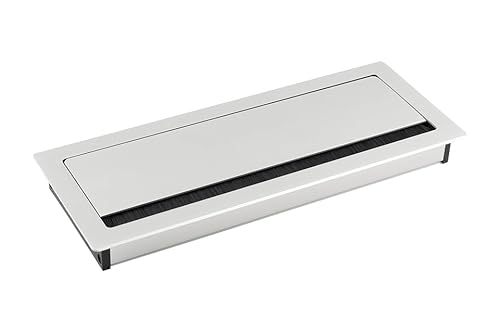 cyclingcolors passe cable métal 320x100x29mm aluminium blanc rectangulaire meuble bureau table