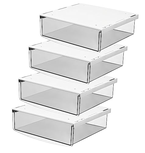 TUKA-i-AKUT 4X 3,5L Tiroirs Sous Bureau, 24x21x8cm Autocollant Boîte à Tiroirs Cachée Organisateur de Rangement pour Bureau/Meuble/Bibliothèque/Armoire de Cuisine, 4 Unités Givré Translucide TKD8606