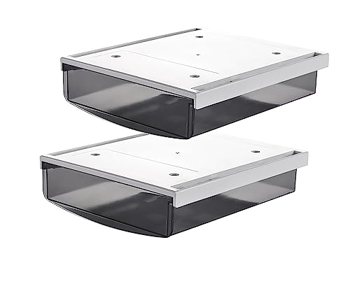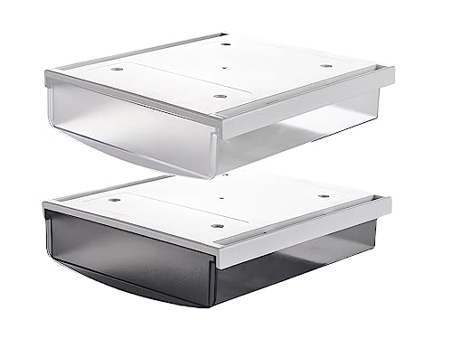 TUKA-i-AKUT 2X 3,5L Tiroirs Sous Bureau, 24x21x8cm Autocollant Boîte à Tiroirs Cachée Organisateur pour Bureau/Meuble/Bibliothèque/Armoire de Cuisine, 2 Unités Givré Translucide + Noir TKD8606