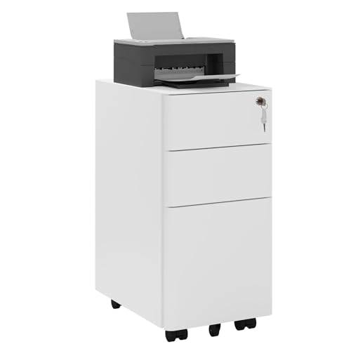WOLTU Caisson de Bureau Mobile, Meuble de Rangement pour Dossiers Suspendus Format A4, Caisson sur roulettes, Armoire Documents avec 3 Tiroirs Verrouillables, en Métal, Blanc, 30x45x60 cm, ASK10ws
