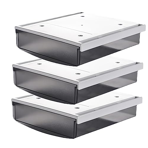 TUKA-i-AKUT 3X 3,5L Tiroirs Sous Bureau, 24x21x8cm Autocollant Boîte à Tiroirs Cachée, Organisateur Boîte de Rangement pour Bureau/Meuble/Bibliothèque/Armoire de Cuisine, 3 Unités Givré Noir TKD8606
