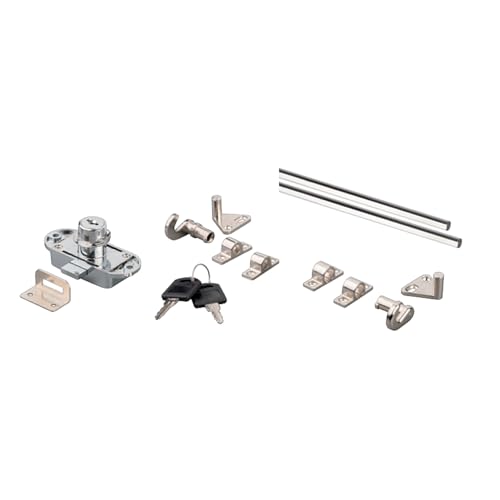 cyclingcolors 1x Serrure trois points espagnolette tiges 1000 + 1200 mm avec rosace fixations contrepièces meuble bureau armoire, chrome