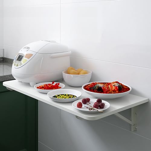 Table Murale Rabattable Table Rabattable Bureau Mural Cuisine Murale Rabattable Table à Manger Pliante Table à Linge Étagère Murale Pliable Bureaux D’Ordinateur Pos, White, 50 * 40cm/20 * 16in