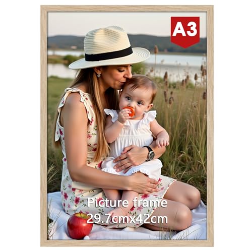 Ditwis Cadre A3 Couleur du bois, Adapté pour Posters, Photos et Puzzles, Grand Cadre pour Salon, Bureau, Galerie Affichage Mural