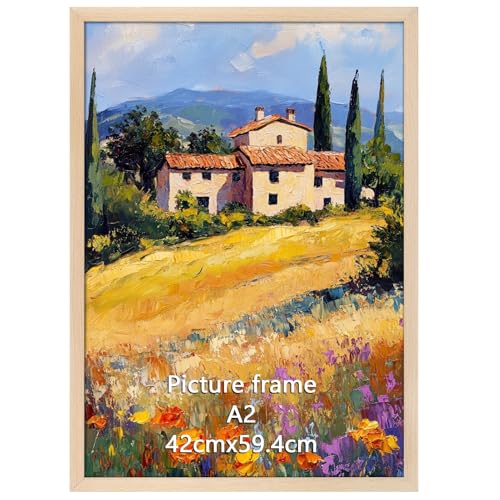 Ditwis Cadre A2 Couleur du bois Aluminium, Adapté pour Posters et Puzzles, Grand Cadre Métallique pour Salon, Bureau, Galerie Affichage Mural
