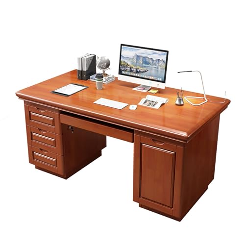 Bureau d'ordinateur en Bois Massif avec 3 tiroirs - Grande Table de Travail pour Bureau à Domicile, Poste de Travail de Direction, Meuble de Rangement pour Ordinateur Portable, élégant et fo