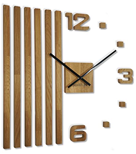 FLEXISTYLE Horloge Murale 3D DIY en Bois de chêne Grande 100-130 cm (épaisseur 20 mm) Sticker Mural Décoration Horloges pour Bureau, Salon, Chambre à Coucher Article de décoration Horloge à Quartz