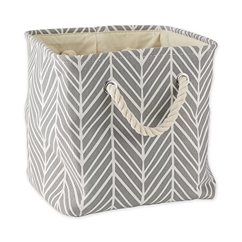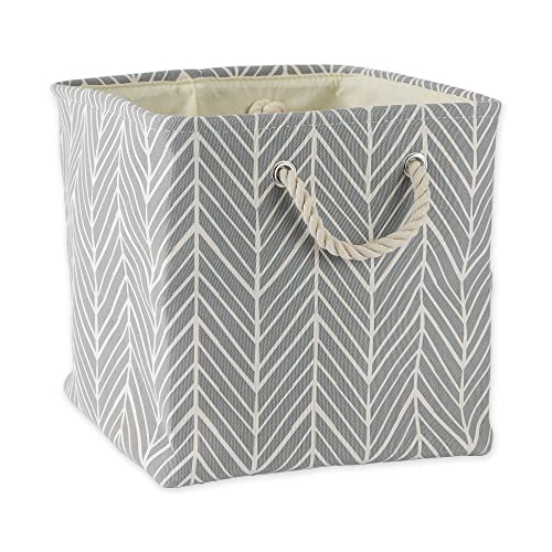 DII Panier de rangement pliable en polyester avec poignées en coton durable, solution de rangement pour bureau, chambre, placard, jouets et buanderie (28 x 28 x 28 cm) – Chevrons gris