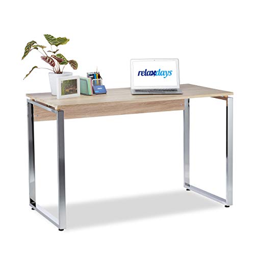 Relaxdays Bureau pour Bureau à Domicile, Bureau d'ordinateur, pour Chambre d'adolescent, 76 x 120 x 60 cm, Aspect chêne Sonoma, Panneau MDF, Acier PP,