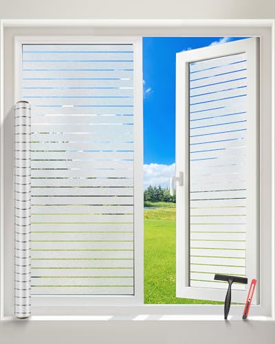 Zindoo Film Fenetre Anti Regard Motif Rayure Dépoli 45 × 200cm Film Occultant Fenêtre Autocollant Anti UV Effet Électrostatique Idéal pour Bureau Chambre Salon Cuisine
