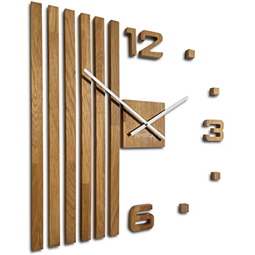 Horloge murale 3D DIY en bois de chêne - Grande horloge murale 50-75 cm - 3D - Design moderne - EKO - Horloge murale décorative pour bureau, salon, chambre à coucher - Article de décoration - Horloge