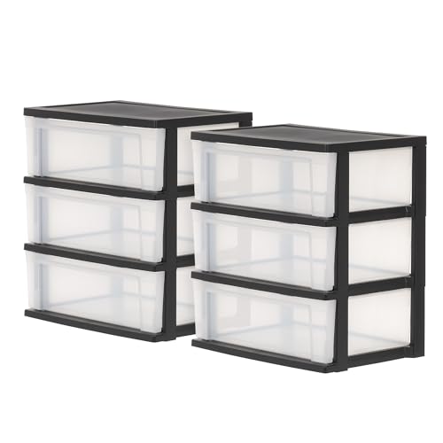 Iris Ohyama, Large Tour de Rangement en Plastique, Lot de 2 Tours, 3 Tiroirs de 34L, Noir, Commodes de chambre, pour Bureau, Garage, Chambre à coucher, Sans BPA, Tiroir, NSW-603