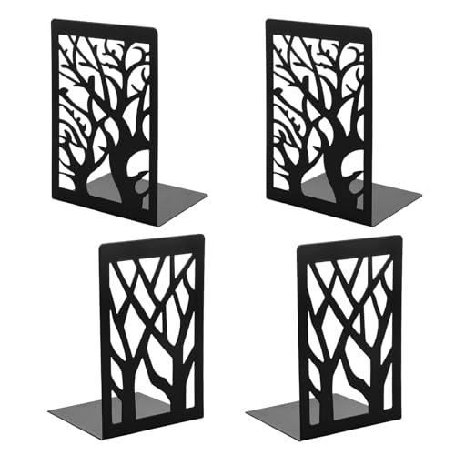 ASelected Lot de 4 Serre-Livres en métal Robuste - Deux Paires de Serre-Livres Noirs en Forme de L avec Tapis antidérapant - pour la Maison, Le Bureau, la bibliothèque