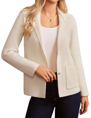 GRACE KARIN Blazer en tricot à manches longues pour femme avec deux boutons, col taille et revers à encoche - Cardigan d'affaires décontracté pour bureau, abricot, M