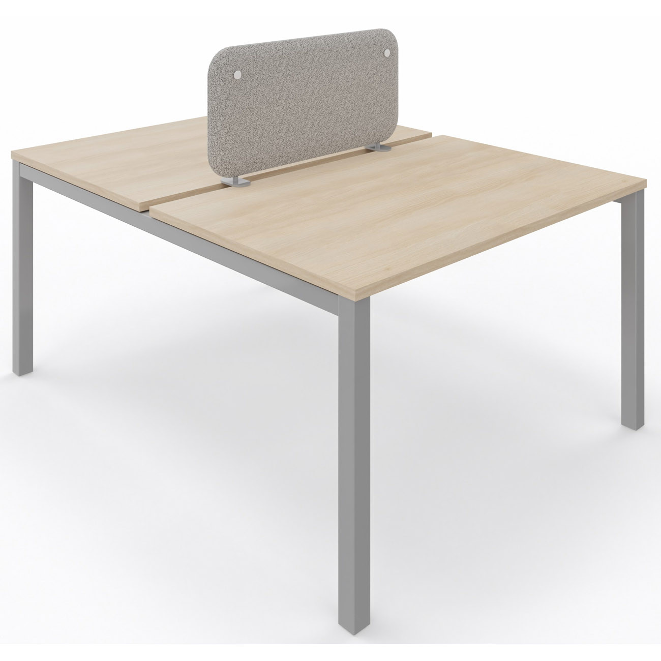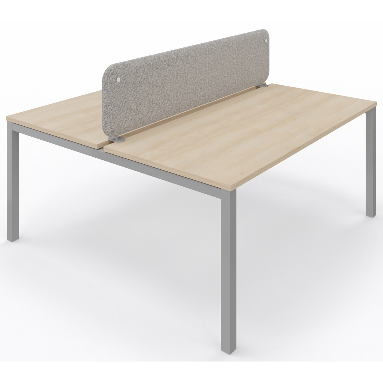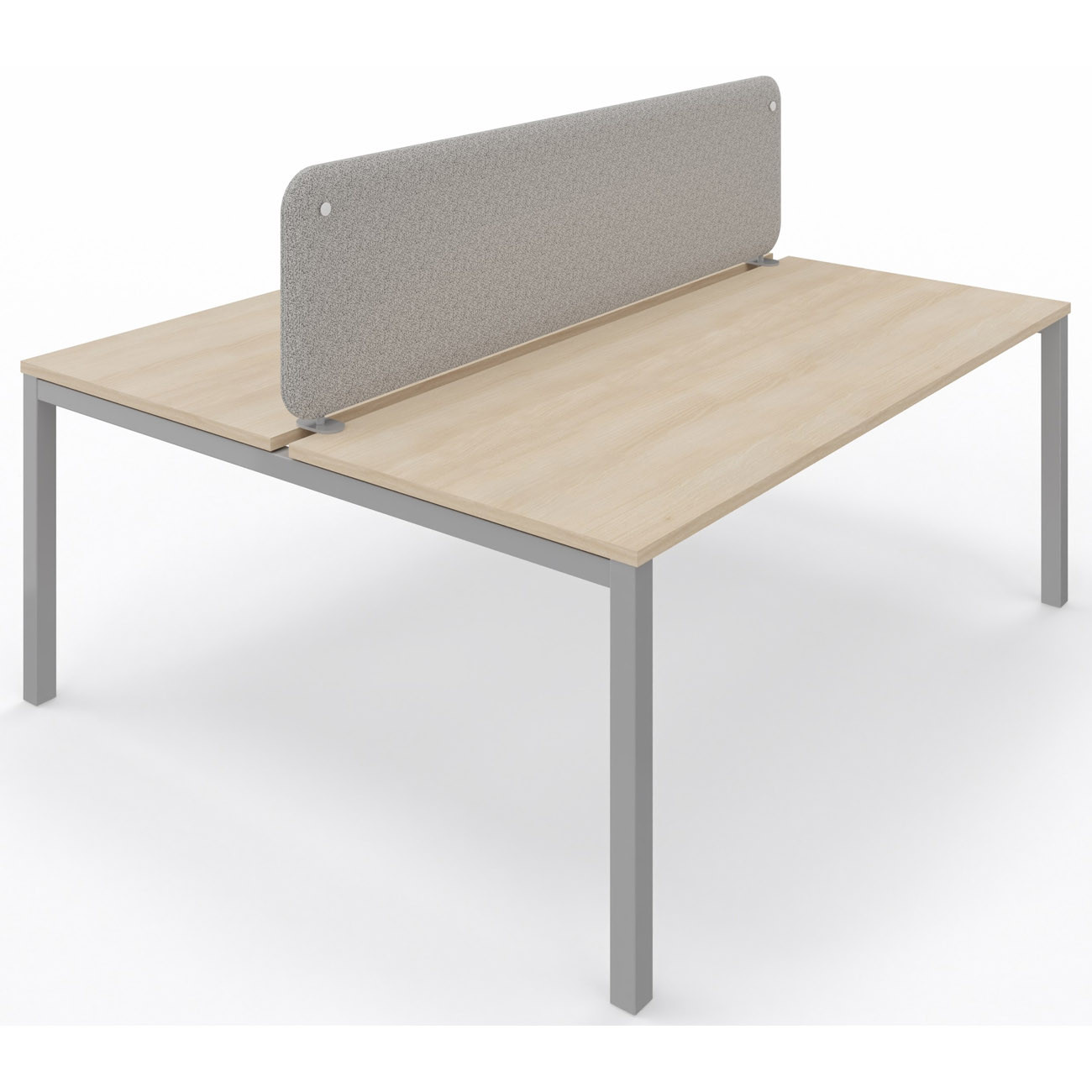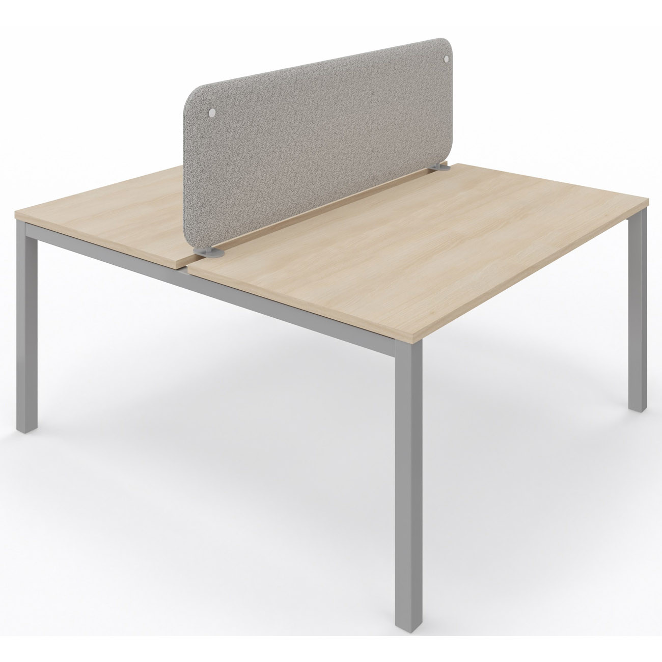 Panneau-écran acoustique frontal Solange pour bureau bench L. 160 x h. 50 cm - Tissu Gris Chiné - Pinces Double Blanches
