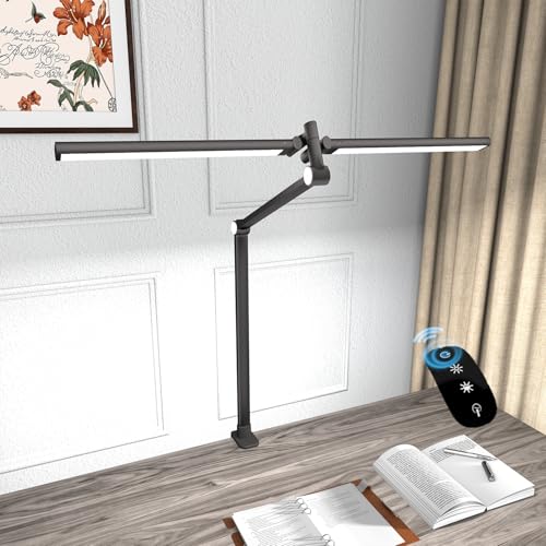 SIBRILLE Lampe de Bureau LED à Double Tête, 22W 80cm Lampe de Table à Clipser avec Télécommande, 5 Températures de Couleur&Luminosité Lanterne de Lecture Rotative pour Design,Lecture,Ecran