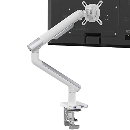 CTA Digital Support de Bras pour écran Simple – 23" à 35" – Double Port USB 3.0 et Pince de Bras pour Bureau Blanc