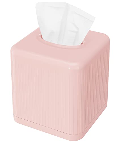 Livelab Couvercle de boîte à mouchoirs avec Base, Support carré en Plastique décoratif Moderne pour Salle de Bain, Meuble, comptoir, Salon, Chambre à Coucher, Bureau – Rose