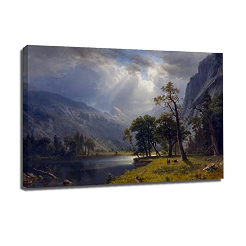 TSHAOSHUNHT Albert Bierstadt Célèbre Seine Peintures Imprimer Impressionniste Mur Art Toile Photos pour Bureau Décor Suspendu Peinture 30x45cm Cadre Intérieur