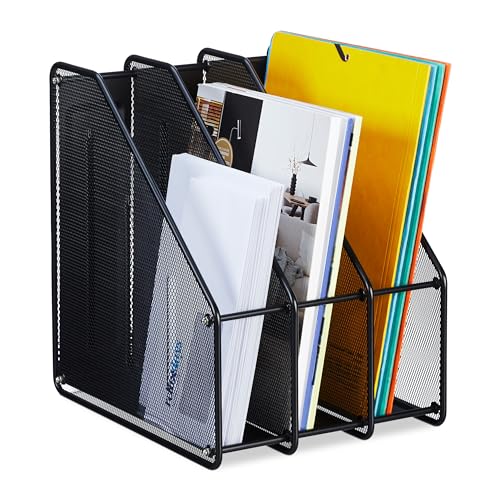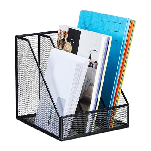Relaxdays Range-revues à 3 Compartiments, Format A4, Design Maille, HLP 31,5x24x29 cm, Bureau/télétravail, Noir