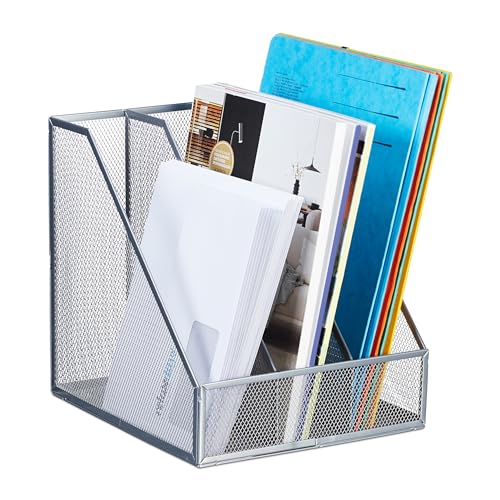 Relaxdays Range-revues à 3 Compartiments, Format A4, Design Maille, HLP 31,5x24x29 cm, Bureau/télétravail, argenté