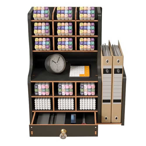 Spacrea Organiseur de stylos en métal, porte-crayons pour bureau, organiseur de bureau avec tiroir pour l'école, la maison, les fournitures artistiques (noir)