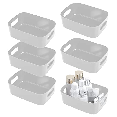 SHEPIN Lot de 6 Boîte Rangement Plastique Panier Rangement Panier et Boîte de Rangement Salle de Bain Caisse Rangement Plastique avec Poignée pour Maison Bureau Placard Tiroir Étagère