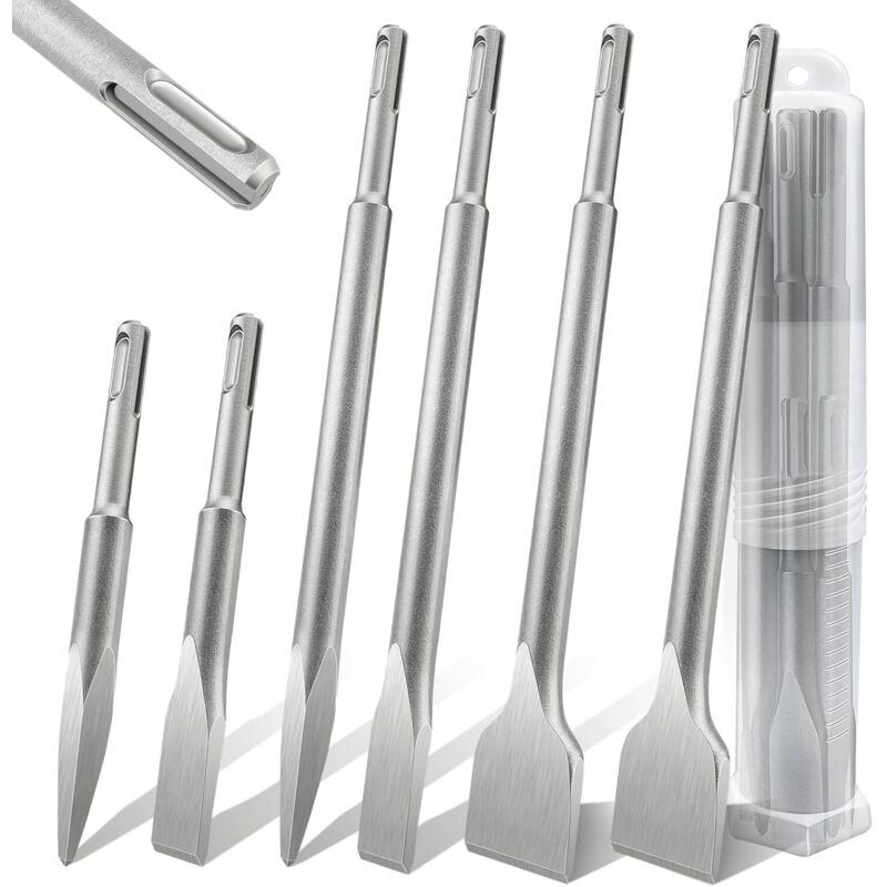 Lytool Jeu 6 Burins SDS-Plus Ciseaux à Béton Carrelage Pierre Maçonnerie, 40CR Burin Plat pour Carreleur, pour Perforateur Burineur, Accessoires pour