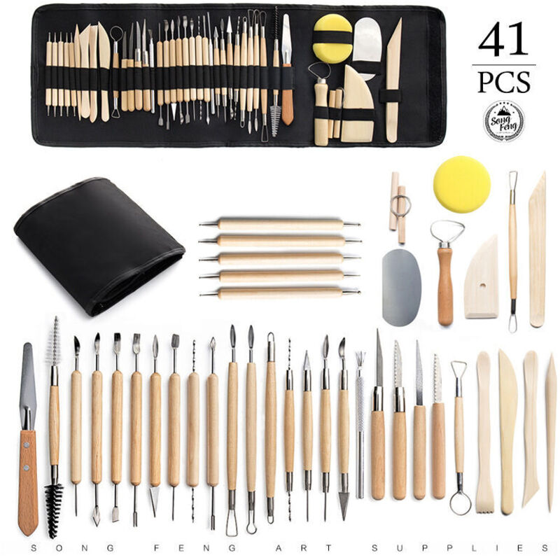 41 pcs Outil de Poterie Sculpture Argile Burin Modelage pour Potier, Céramique, Artiste DIY, avec Sac de Rangement