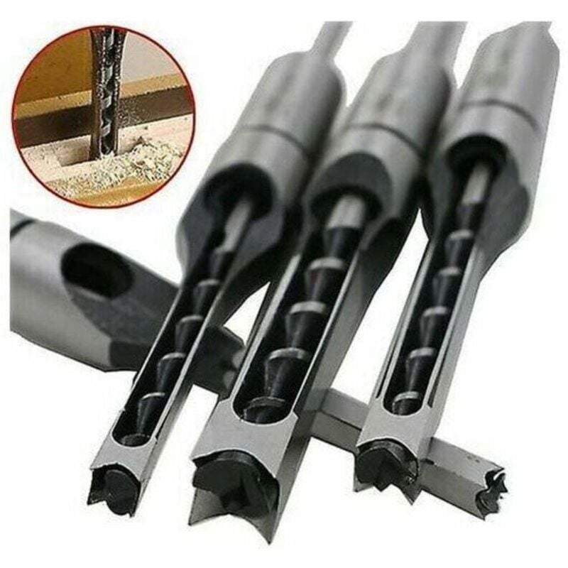 Autre outil du menuisier,Lot de 4 Ensembles de forets à trou carré, Forets à bois trou carré Foret Trou Carré De Perçage Mortaiser Burin