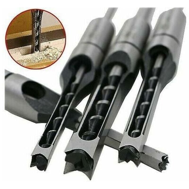 Choyclit - Autre outil du menuisier,Lot de 4 Ensembles de forets à trou carré, Forets à bois trou carré Foret Trou Carré De Perçage Mortaiser Burin
