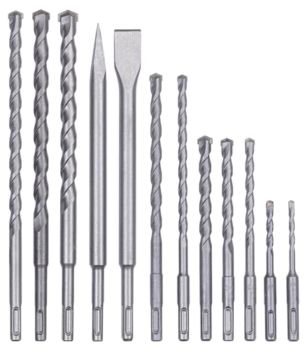 Einhell Jeu de 12 forets et burins pour marteaux perforateurs à mandrin SDS-Plus (10 forets Ø 5-16 mm, burin plat et pointeau)