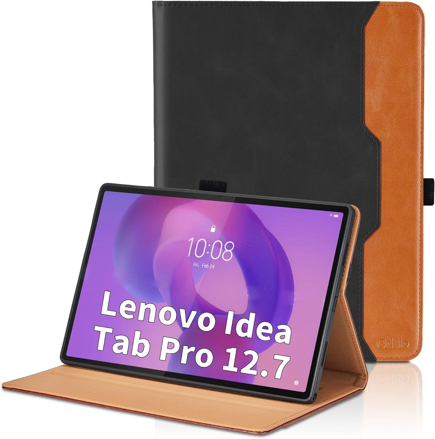 Coque pour Lenovo Idea Tab Pro 12.7 Pouces 2025 Business Premium PU Cuir Cover Tablette Housse de Protection, Multi-Angle Étui avec Poche-Noir