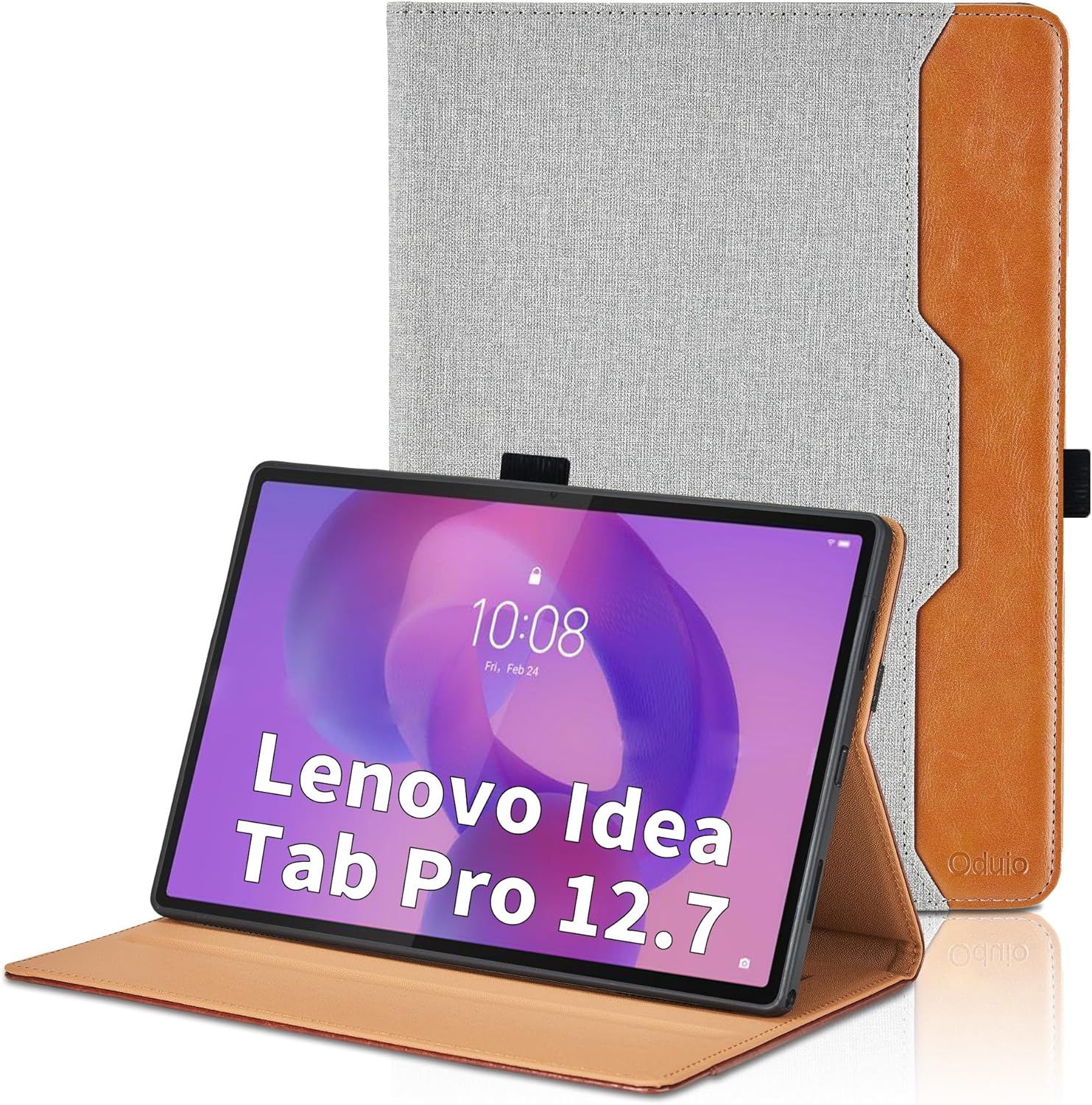 Coque pour Lenovo Idea Tab Pro 12.7 Pouces 2025 Business Premium PU Cuir Cover Tablette Housse de Protection, Multi-Angle Étui avec Poche-Gris
