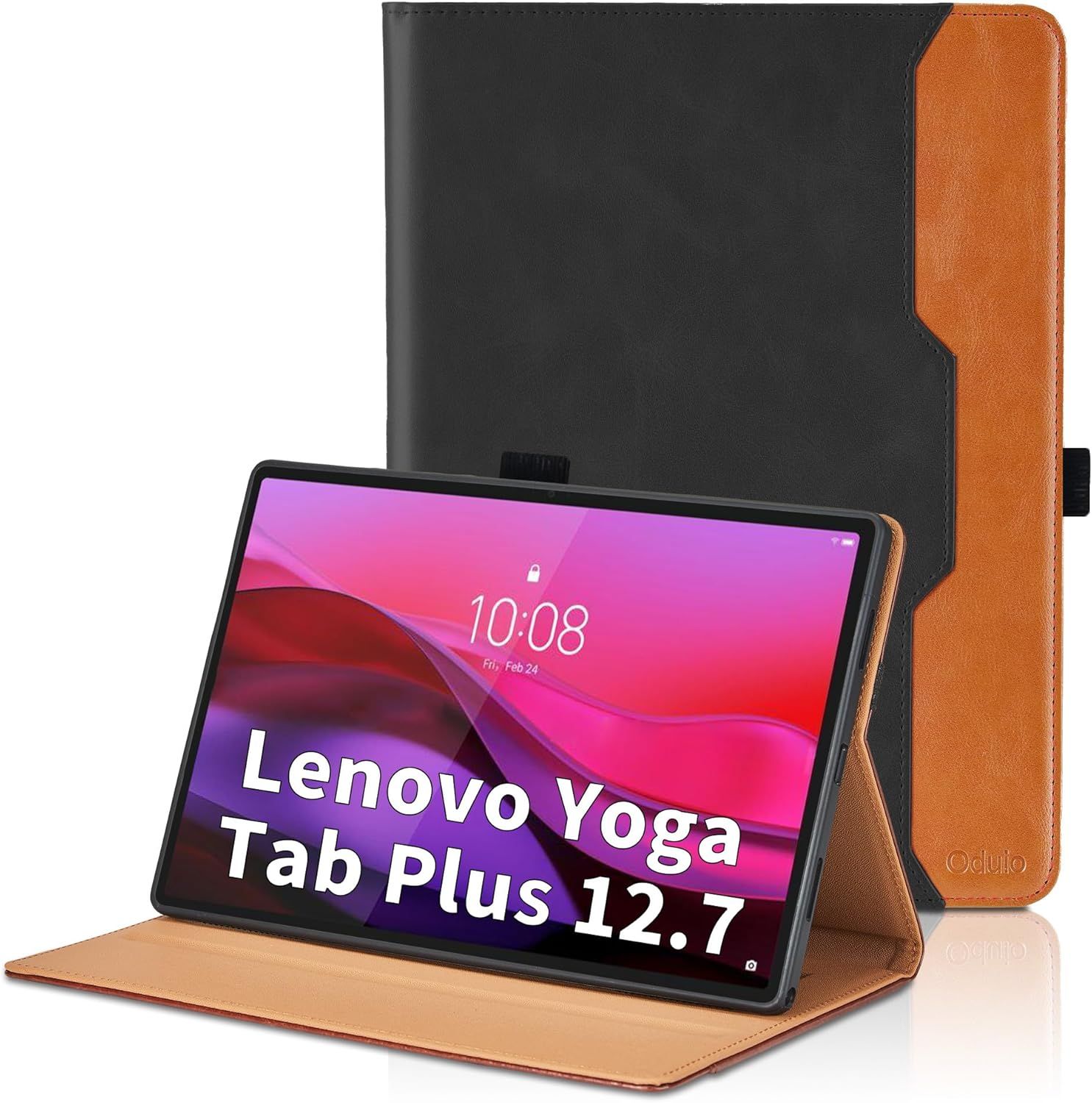 Kalws-Coque Pour Lenovo Yoga Tab Plus 12.7 Pouces 2025 Business Premium Pu Cuir Cover Tablette Housse De Protection Auto Réveil/Sommeil,Multi-Angle Étui Avec Poche-Noir