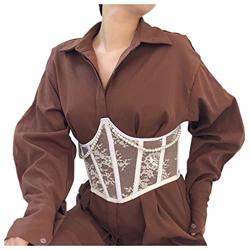 Ceinture Corset Femme RéTro- Bustier Corset en Dentelle PerléE éLastique Large pour Habiller Et Robes De SoiréE Ventre Plat Grande Taille Halloween Steampunk Gothique Medieval Mode Victorien