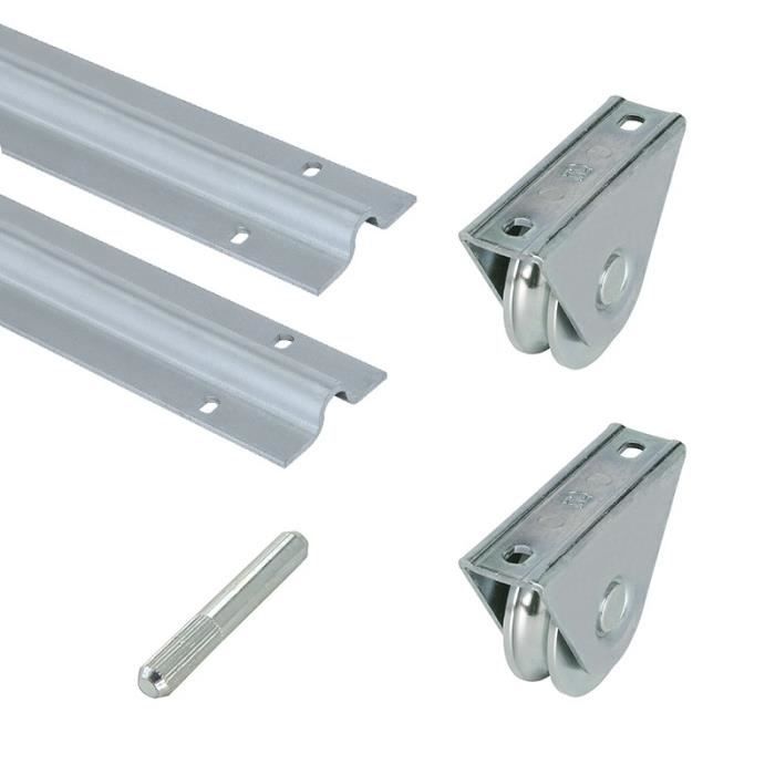 Kit De Portail 4 Mètres Pour Gorge Ronde 16 mm 2 Rails L 2 Mètres 1 Jonction 2 Roues ou Galets 1 Plaque De Guidage 1 Butée