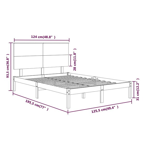 vidaXL cadre de lit massivt trä 120x190 cm liten dubbelsäng 3100689