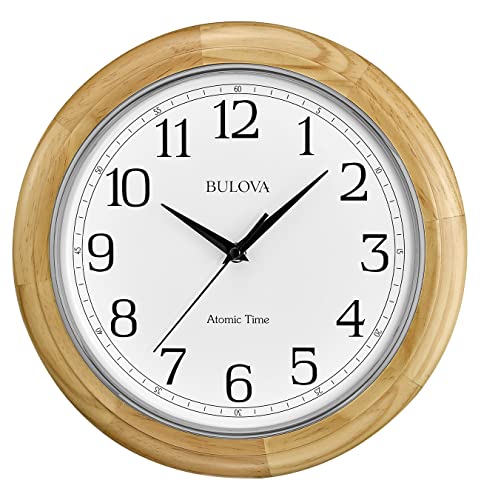Bulova Horloge Murale analogique en Bois, C5005 Atomic Time 3, se Fixe automatiquement, Pile à Quartz