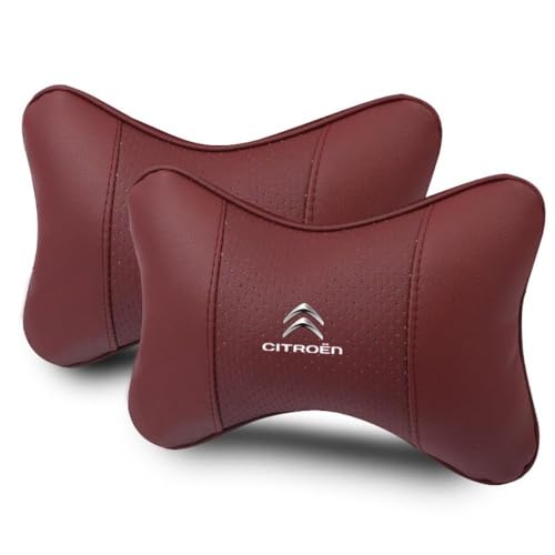 OscitY 2PCS Voiture Cuir Appui-Tête, pour Citroen ami AMI Xsara Picasso Berlingo C1 C2 C3 Aircross C4 Nuque Soutien Coussin Réglable Respirant Confortable Car siège Accessoires,C/Red