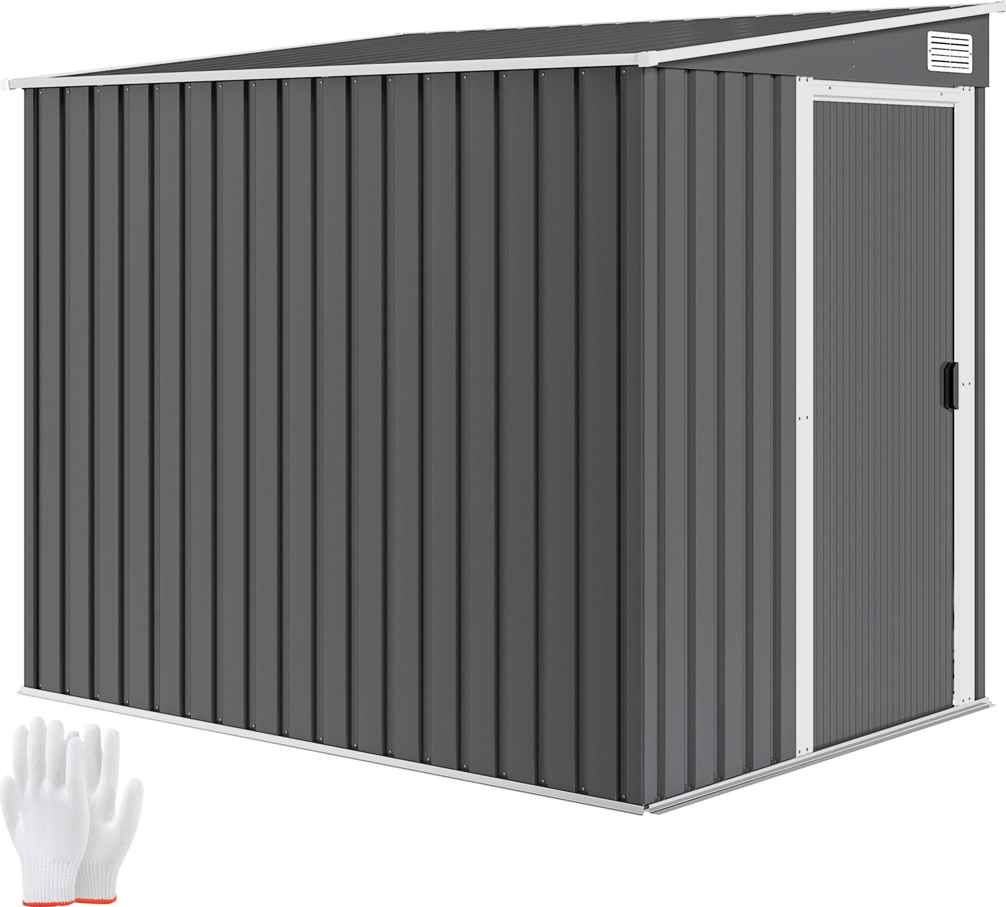 Outsunny Abri de Jardin en métal 2,81 m² avec kit de Fondation, cabane de Jardin extérieure en Acier galvanisé adossée, Toit incliné, abri à Outils avec 2 étagères réglables, 154x206,5x181 cm, Gris