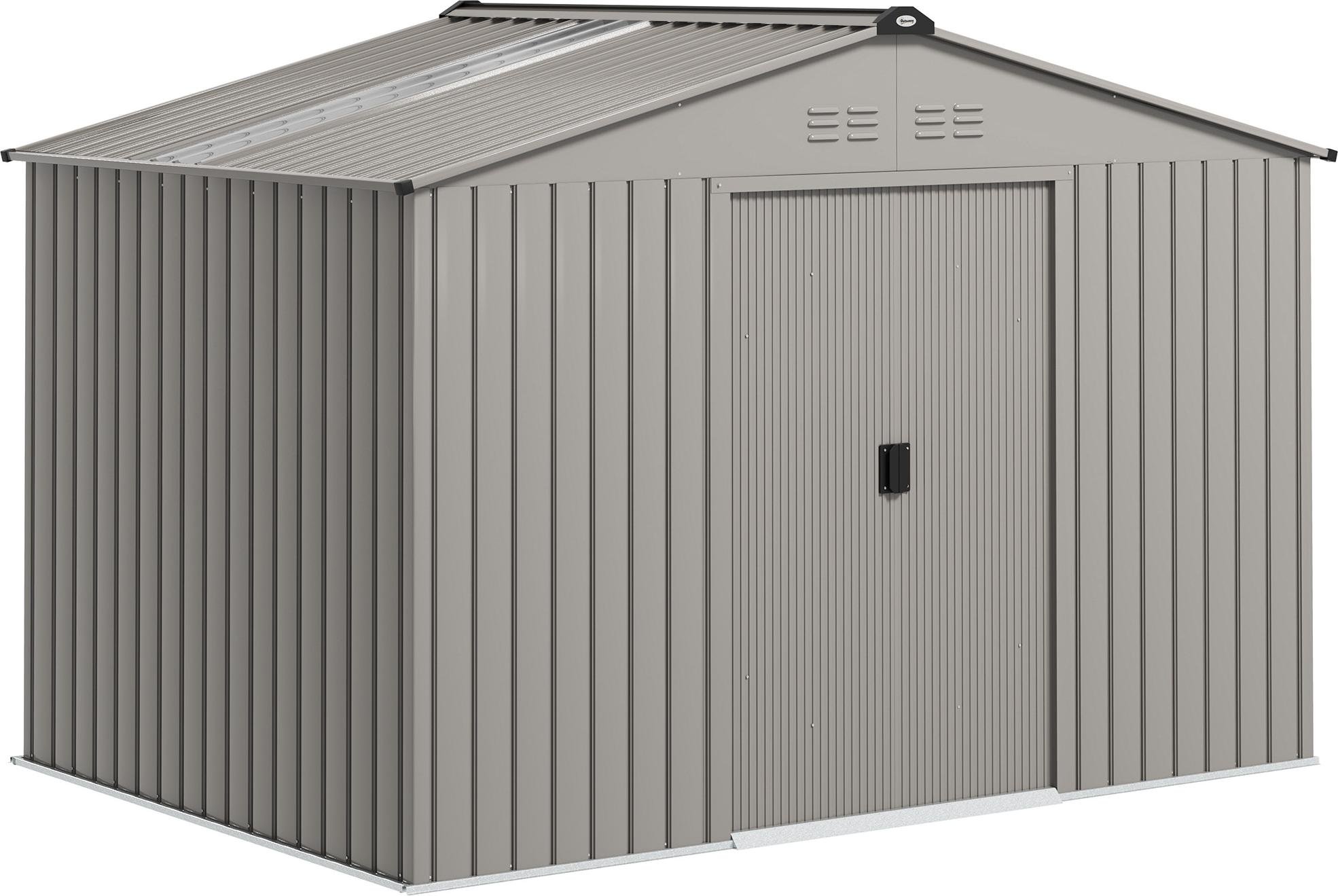 Outsunny Abri de Jardin en métal 5,4 m² cabane de Jardin 277 x 195 x 192 cm cabanon Rangement Outils avec kit de Fondation, Porte coulissante verrouillables et 4 aérations - Gris