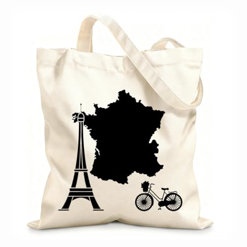 AILOONG Cabane réutilisable tissu épais de 12 oz Paris, Tour Eiffel, France - Carte du tourisme à vélo Slogan personnalisable 35x40cm Grand