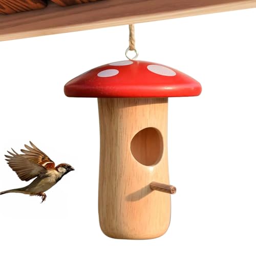 Nichoir pour colibri – Nichoir à oiseaux pour nidification, cabane en bois, motif champignon, abri pour animaux de compagnie pour extérieur, jardin, cour, porche, balcon
