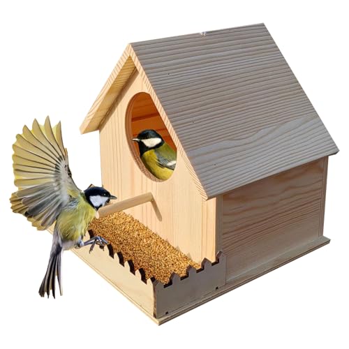 Mxtech Mangeoires à Oiseaux pour l'extérieur de la cabane à Oiseaux, Nourriture pour Oiseaux pour mangeoire extérieure Nid d'oiseaux en Bois, mangeoire à Oiseaux, mangeoires à Oiseaux pour