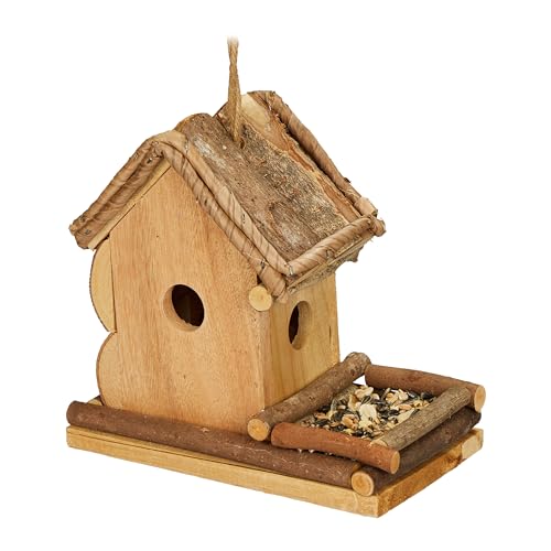 Relaxdays Cabane à Oiseaux décorative, en Bois, à Suspendre, HxLxP : 21 x 21 x 12,5 cm, pour Balcon et Jardin, Nature