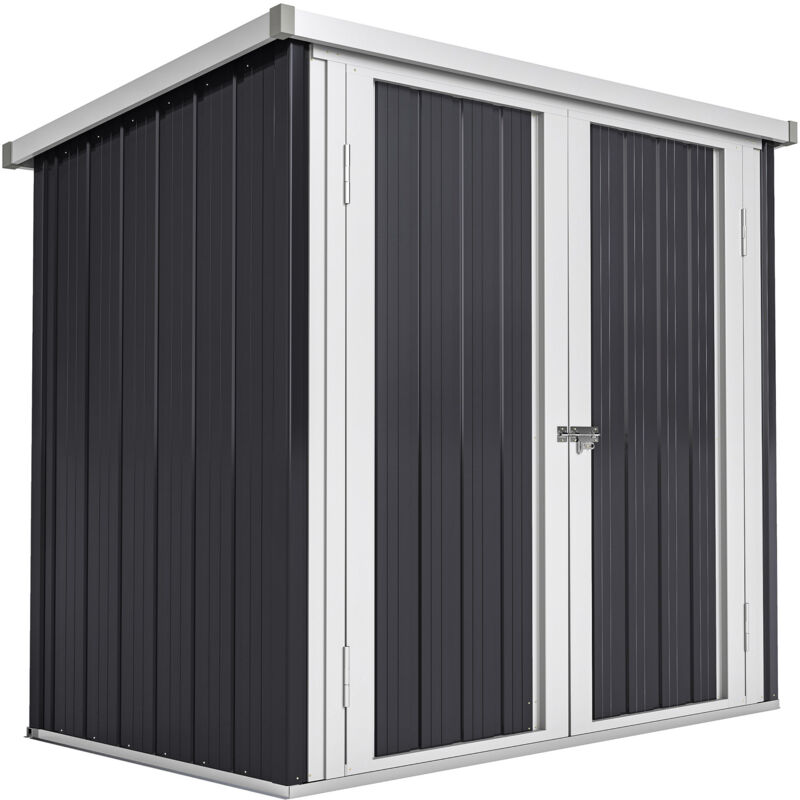 RELAX4LIFE Abri de Jardin en Métal 3,6M3-2,2M2 avec Double Porte Coulissante Toit en Appentis et Volets, Cabane à Outils en Tôle d'acier Galvanisée 182X129X186CM pour Poubelles Vélos Outils