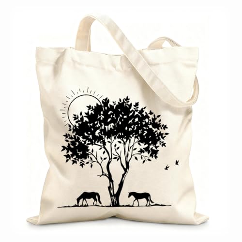 AILOONG Cabane réutilisable tissu épais de 12 oz Branches d'arbres naturelles Famille Beaux chevaux Slogan personnalisable 31x36cm Moyen