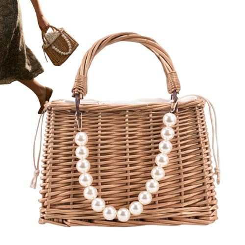 FRCOLOR Sac Paille Tressée Cabas De Plage Été Petit Sac Tissé Osier Portable Léger pour Garçon Fille