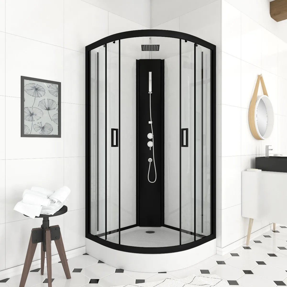 Cabine de douche quart de cercle